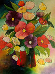 FLOWERS IN RED VASE